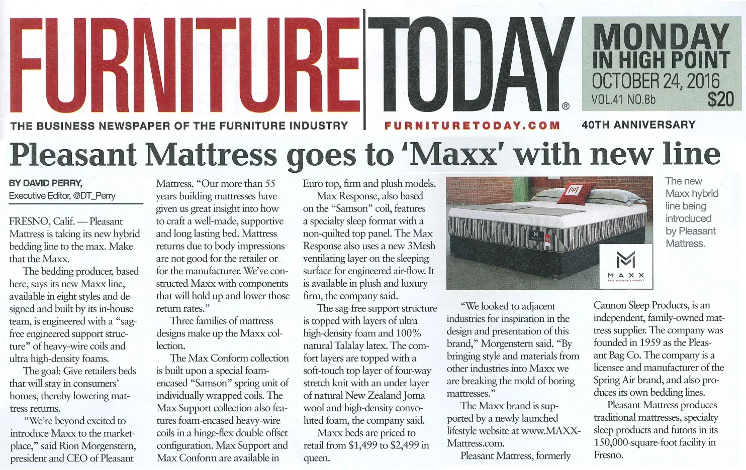 FRESNO, Calif. -- Pleasant Mattress is taking its new hybrid bedding line to the max. Make that the MAXX.